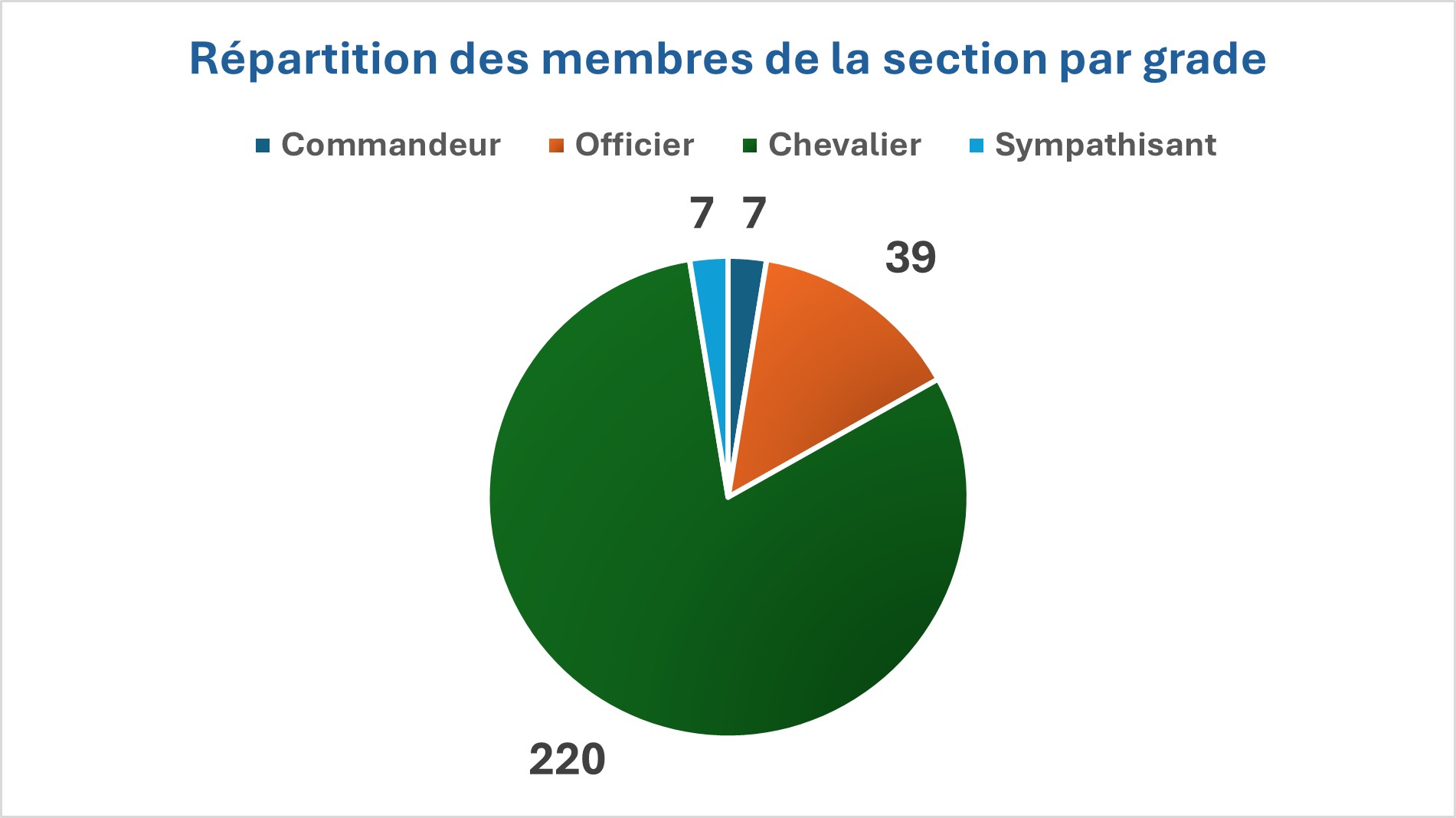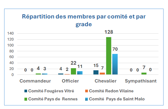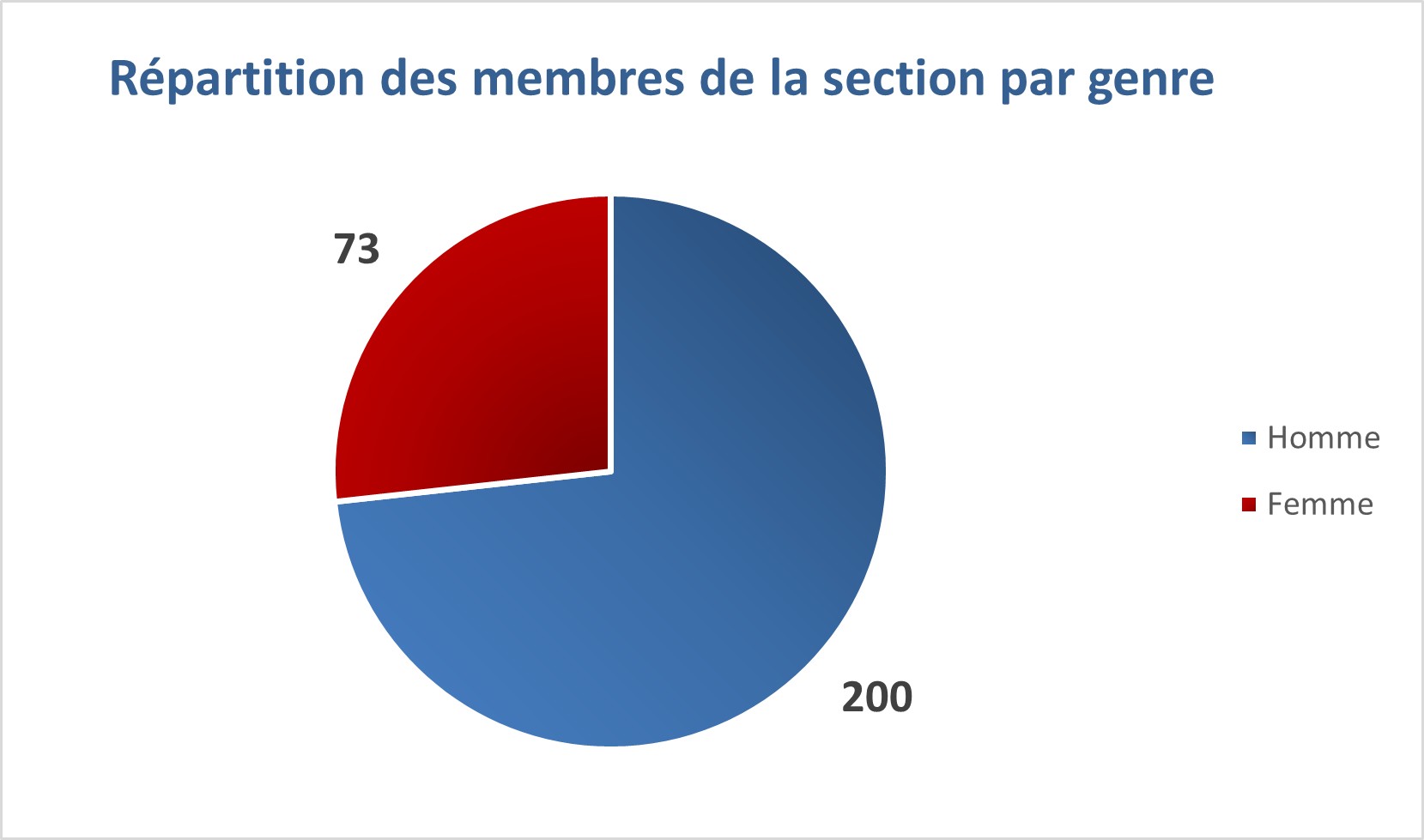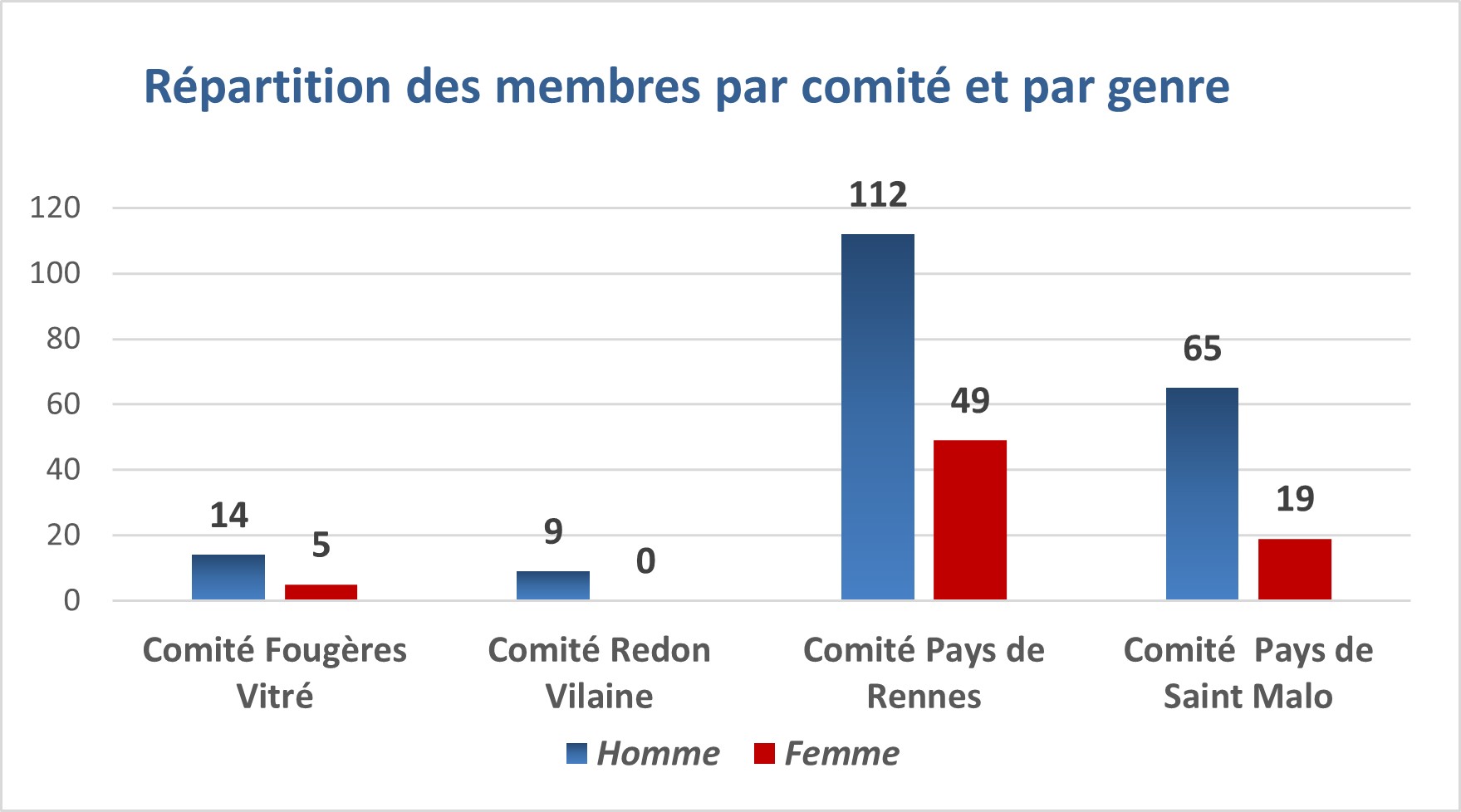 Cette statistique novembre 2025, nous donne la répartition par comités locaux, par grade et par genre des membres