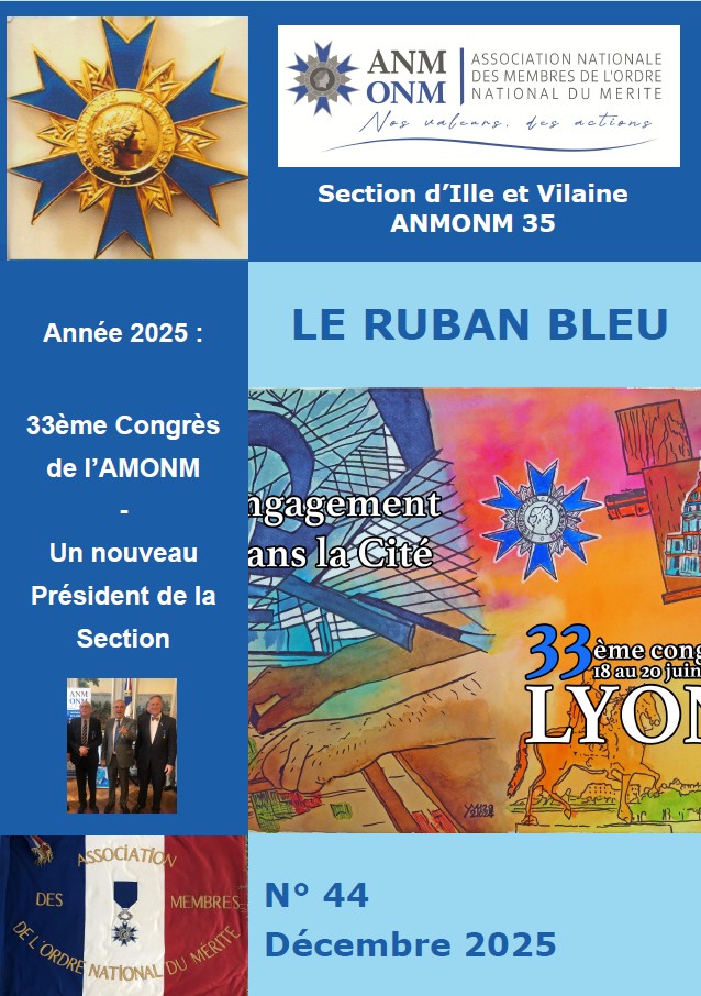 Le RUBAN BLEU est notre revue annuelle publiée en fin d'année civile. Elle est notre vitrine. Outre le compte rendu de l'Assemblée générale annuelle et des informations sur la vie de la section, elle ouvre ses pages à nos compagnons. Elle montre la richesse des parcours de ses membres et leur ouverture sur des sujets d'actualité, de mémoire.